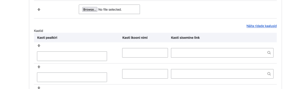 Kui üks lahtritest on täidetud või pilt üles laetud, siis on ka teised lahtrid kohustuslikud (erand on sisemine või välimine link, kuhu tuleb lisada üks või teine väärtus).