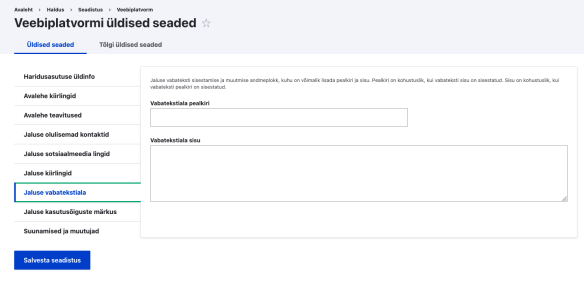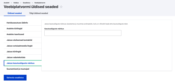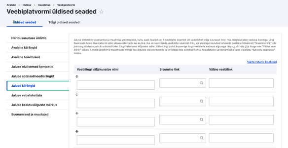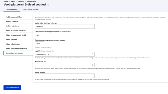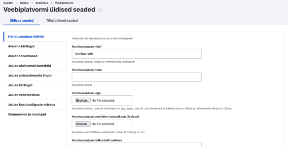 URL: admin/config/veebiplatvorm/uldised-seaded