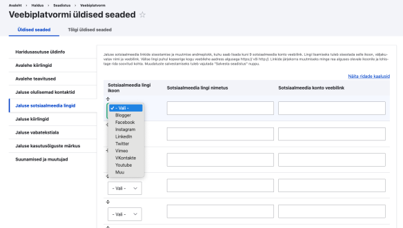 Infot saad lisada lahtritesse "Sotsiaalmeedia lingi nimetus" ja "Sotsiaalmeedia konto veebilink".