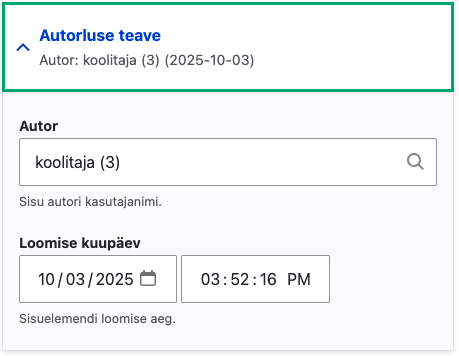 Enamus sisude puhul kuvatakse Autori lahtris autori kasutajanimi.