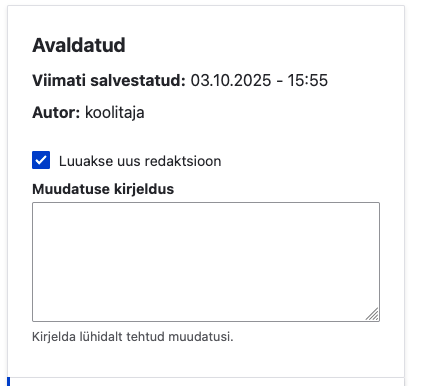 Kui oled loonud varasemalt sisulehe kindla pealkirjaga (millele tekkis kindel URL) ja muudad pealkirja ning salvestad, tekib ka URL redirects vaatesse eelmise pealkirjaga URL.
